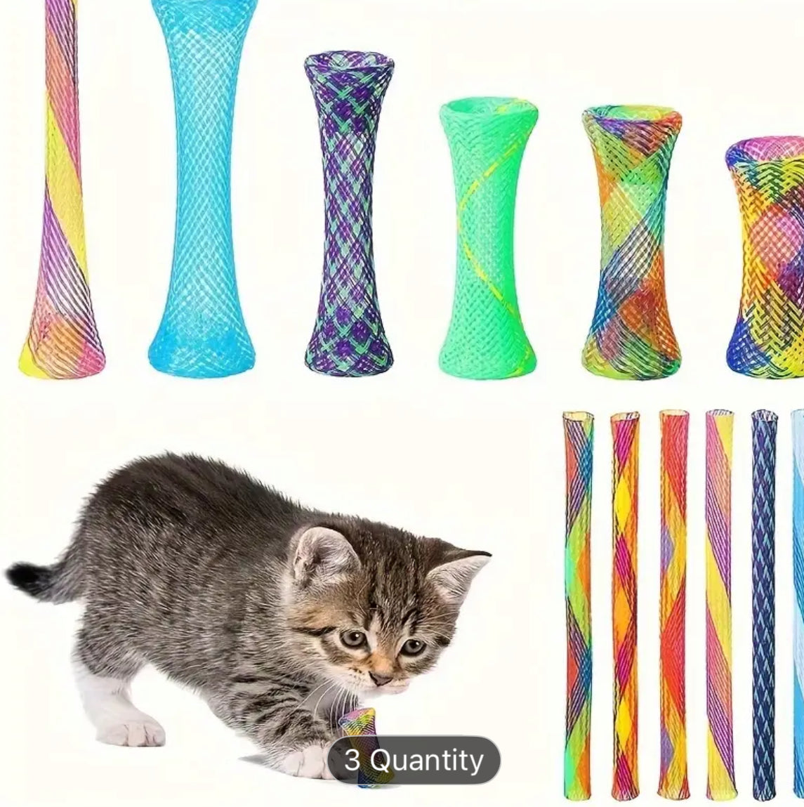 These tube toys are a hit with cats and kittens. They are light and easy to bat and chase. Your cat will love these.