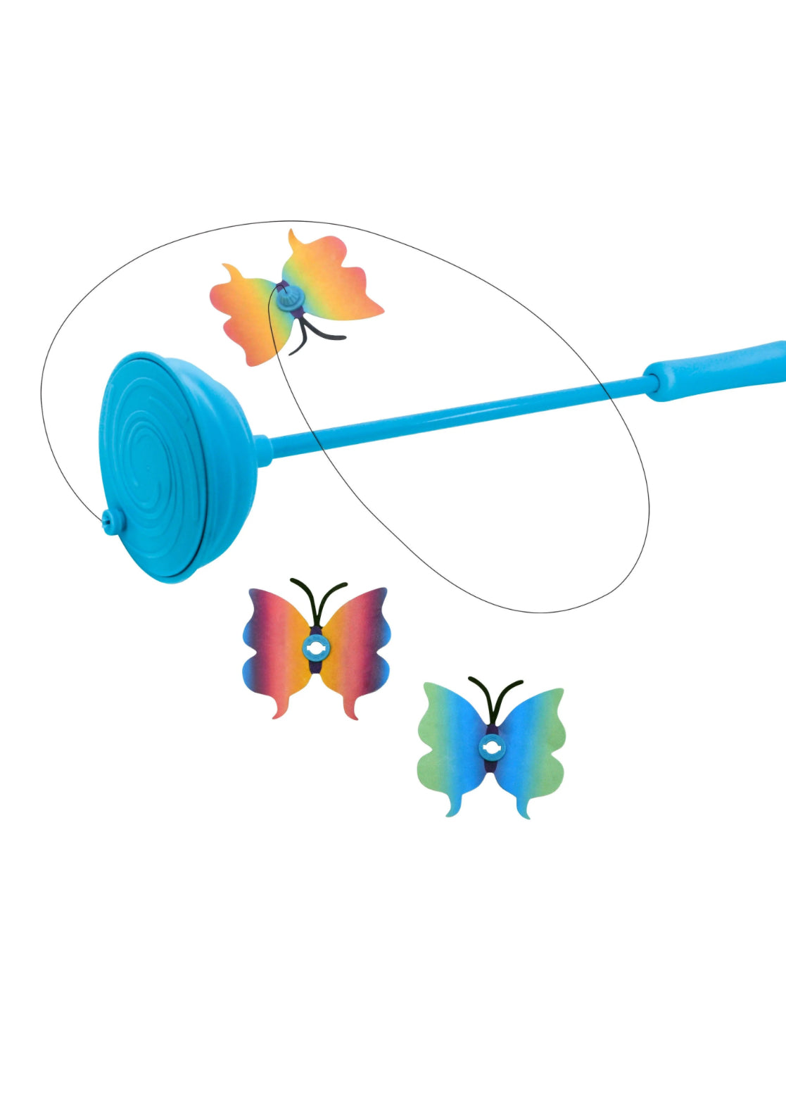 KONG Purrsuit Teaser’s fluttering, flitting action mimics natural butterfly flight, sparking a cat’s stalking and pouncing instincts. Includes three interchangeable butterflies that reward grab and capture play. Extend the fun by changing the flight pattern by changing the angle of wand and provide an endless variety of play. The interactive fun can also be varied by using automatic or manual modes. Includes three interchangeable toys and batteries.