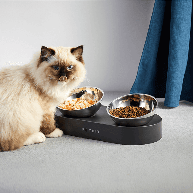 PETKIT FRESH NANO 15° Adjustable Feeding Metal Dual Bowl, has calculated the best inclination angle for pets when feeding, helping them develop healthier eating habits. The two feeding bowls raised to the proper height, allows your cat/small dogs to sit upright while eating, giving their stomach plenty of room to digest the food properly. The 15° angle is friendly to flat-faced cats, such as Persians, British Shorthairs, Himalayans and Scottish Folds, by reducing neck pressure whilst lowering the head to eat. The metal bowl is made of premium 304 stainless steel which makes it durable, sanitary, rust-free and dishwasher-safe.